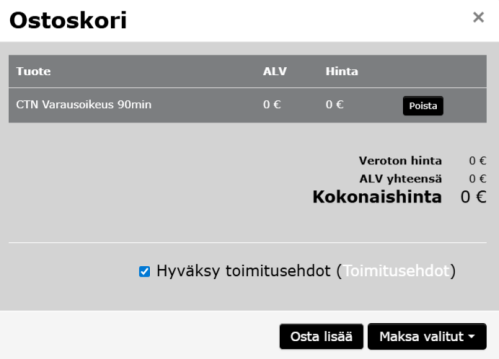 Hyväksy toimitusehdot ja klikkaa MAKSA VALITUT - painiketta